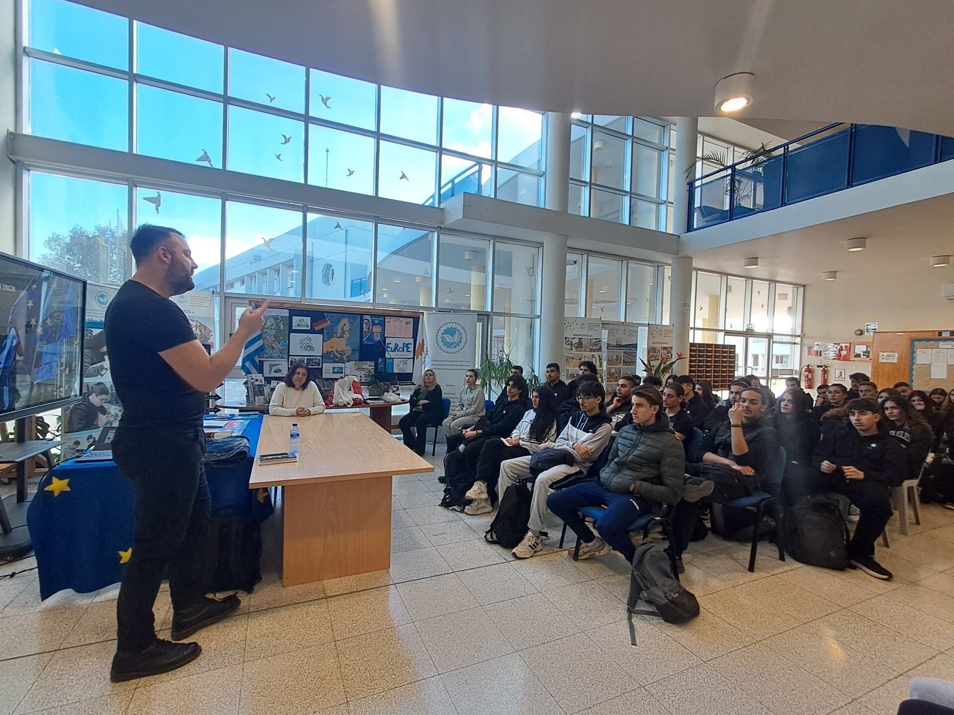 Την Τρίτη, 3 Φεβρουαρίου 2026, είχαμε τη χαρά να υποδεχτούμε στο σχολείο μας τον κ. Κωνσταντίνο Κακούρο, στο πλαίσιο ενημέρωσης σχετικά με τα θεσμικά όργανα της Ευρωπαϊκής Ένωσης, τον θεσμό της Προεδρίας του Συμβουλίου της και τις...